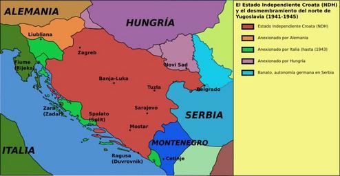 | Keywords: NDH-Croacia1941-1945.svg Italian areas and in brown the Hungarian areas and in blue the German areas es Reparto del norte de Yugoslavia por las potencias del Eje durante la Segunda Guerra Mundial y el Estado Independiente Croata NDH Croatia_41_45 gif 2010-01-10 21 35 UTC Bucchianeri Marco derivative work Rowanwindwhistler <span class signature-talk >talk</span> Spanish version and map turned into svg rowanwindwhistler Croatia_41_45 gif PD-user-w original upload log This image is a derivative work of the following images File Croatia_41_45 gif licensed with PD-user-w 2006-03-29T17 37 55Z Red devil 666 588x447 22620 Bytes <nowiki>Map of Indipendent Croatia State in 1941 red area In green there are the Italian areas and in brown the Hungarian areas and in blu the Germanian areas Author w it utente Bukkia Bucc</nowiki> Uploaded with derivativeFX Maps of the Independent State of Croatia Maps of Yugoslavia during World War II Maps of Serbia during World War II Maps of Montenegro during World War II Maps of World War II in Slovenia SVG maps showing history in Spanish |
