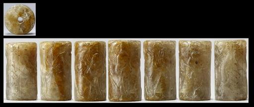 | Keywords: Near Eastern - Cylinder Seal with Bull and Lion on Hind Legs - Walters 42720 - View A.jpg The scene depicts two sets of battling beasts The first is a strangely posed bull-man wrestling with a fantastic lion-like creature; the second is another strangely posed bull-man wrestling with a composite horned caprid/bull creature There is one register of cuneiform date brown and white stone cm 2 9 1 5 accession number 42 720 8235 Sadie Jones Mrs Henry Walters New York date and mode of acquisition unknown Sale Joseph Brummer New York 1941 Walters Art Museum 1941 by purchase Museum purchase 1941 Inscription place of origin Mesopotamia Walters Art Museum license Cylinder seals in the Walters Art Museum Art of the ancient Near East Cuneiform on media Walters cylinder seal 42720 Cuneiform on cylinder seals Walters Art Museum cylinder seals with cuneiform IGI cuneiform Ši cuneiform Ud cuneiform DINGIR god-as-star Sumerogram Media contributed by the Walters Art Museum needs category review |