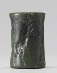 | Keywords: Near Eastern - Cylinder Seal with Figures Wrestling Animals - Walters 42707 - Side D.jpg The scene includes a bearded nude hero wrestling a horned bovid and a bull-man wrestling a lion Additionally there is a cuneiform inscription in two registers date Old Akkadian green stone cm 3 1 1 9 accession number 42 707 5055 Sadie Jones Mrs Henry Walters New York date and mode of acquisition unknown Sale Joseph Brummer New York 1941 Walters Art Museum 1941 by purchase Museum purchase 1941 Inscription place of origin Padua Italy Walters Art Museum license Cylinder seals in the Walters Art Museum Art of the ancient Near East Media contributed by the Walters Art Museum needs category review |