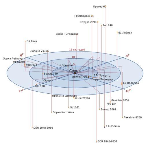 | Keywords: Nearby Stars (14ly Radius)-be.svg A spatial representation of every star within 14 light-years of Sol There are 32 stars in this region including Sol The stars are coloured according to the spectral type which may not reflect the actual colour Please see this Wikipedia article for the listing of stars If a star is double or triple the stars are shown stacked vertically the actual position is the star closest to the centre plane The stars on this map may not all be visible to the naked eye as many are dwarf stars Some of this information may be preliminary and not entirely accurate as a result The coordinate system is right ascension and declination Hours of RA are marked as well as distance in multiples of 5 light-years Ка та азмяшчэння ў п асто ы ўсіх зо ных сістэм у адыусе 14 св гадоў Сонца Уключаючы Сонца у гэтай вобласці знаходзяцца 32 зо ныя сістэмы усе яны пе алічаны ў спісе найбліжэйшых зо ак у «Вікіпедыі» Зо кі азмаляваны ў адпаведнасці з іх спект альным тыпам гэтыя коле ы могуць не супадаць з фактычнымі коле амі зо ак Падвойныя і пат ойныя зо кі азмешчаны ў выглядзе ве тыкальнай калонкі што аднак не адпавядае эальнаму становішчу зо ак у сістэме Большасць зо ак гэтай ка це не бачныя няўзб оеным вокам Частка інфа мацыі можа быць папя эдняй і не цалкам дакладнай Сістэма каа дынат заснавана на п амым узыходжанні і схіленні Вылучаны гадзіны п амога ўзыходжання і адлегласці ад Сонца к атныя 5 св гадам Nearby_Stars_ 14ly_Radius svg 2015-01-31 Nearby_Stars_ 14ly_Radius svg Inductiveload derivative work Чаховіч Уладзіслаў <span class signature-talk >talk</span> 100px Nearby stars Original SVG English 100px Najbližje zvezde SVG slovenščina 100px айближчі зо і SVG Ук аїнська Translated into Belarusian Чаховіч Уладзіслаў Nearby_Stars_ 14ly_Radius svg Uploaded with derivativeFX Solar neighborhood Belarusian language |