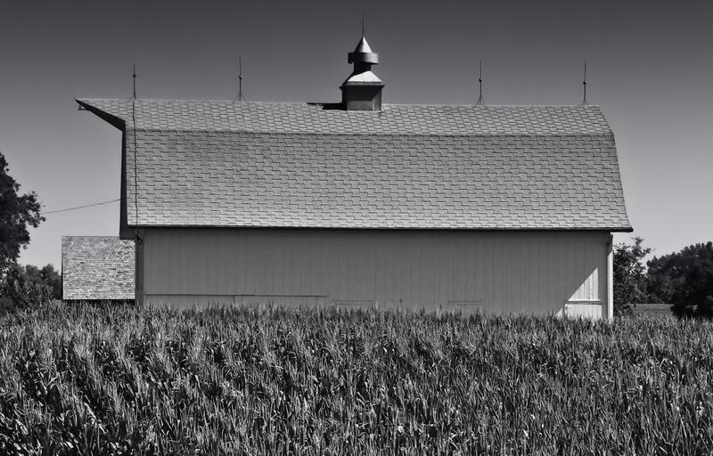 Keywords: nebraska farm rural corn field barn architecture nature outside black and white countryside summer