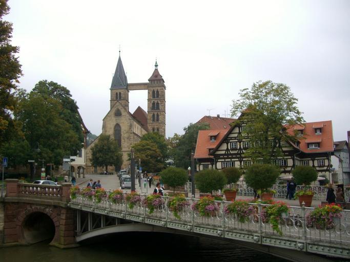 Keywords: neckar canal bridge city church st dani fachwerkhaus esslingen