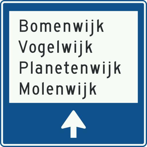 | Keywords: Nederlands verkeersbord K12.svg Netherlands road sign K12 - Local signpost within a built-up area showing names of individual districts in traffic areas Nederlands verkeersbord K12 - Wijkwegwijzer binnen de bebouwde kom met wijknamen in verkeersgebieden http //www rijksoverheid nl/bestanden/documenten-en-publicaties/brochures/2010/07/01/verkeersborden-en-verkeersregels/rvv-juli-2010 pdf Verkeersborden en Verkeersregels in Nederland 2010-09-05 SVG version by Bouwe Brouwer PD-NL-verkeersbord Diagrams of road signs of the Netherlands direction K12 |
