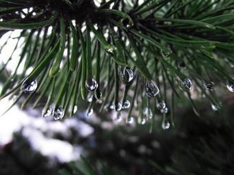 Keywords: needles drip raindrop tree pine sky nature landscape road wet needle droplets green plant water