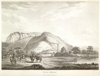 | Keywords: Neel Droog.jpg en Artist Allan Sir Alexander 1764-1820 Medium Aquatint Date 1794 This uncoloured aquatint is taken from plate 5 of Captain Alexander Allan's 'Views in the Mysore Country' The fort of Nilagiridurg three miles from Anchettidurg in Tamil Nadu surrendered to a British battalion in July 1792 Allan wrote This place though respectable in itself in point of strength yet not forming a part of the chain of posts then intended to be established was dismantled during the stay of the army in that vicinity Alexander Allan then a Lieutenant in the Madras Native Infantry was not unusual in serving as a surveyor and skilled amateur artist during the third Anglo-Mysore war Many soldiers were accomplished draughtsmen in the 18th century recording and detailing the sites of conflict Allan was fluent in Persian and served in the fourth and final war even being appointed to carry the flag of truce to Mysore-leader Tipu's palace if he surrendered In the event he was with David Baird when Tipu's body was found He later became a director of the East India Company 1794 http //www europeana eu/portal/search html query nilagiridurgam Allan Sir Alexander PD-old-100 Uploaded with UploadWizard Tamil Nadu in the 1790s Geography of Krishnagiri district |