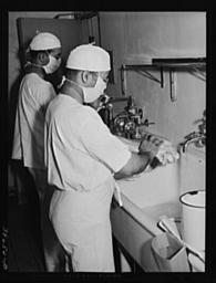 Keywords: Negro doctors in a Chicago, Illinois hospital.jpg en Doctors scrubbing up before an operation 2013-12-03 10 34 38 The Farm Security Administration Russell Lee PD-USGov Uploaded with UploadWizard Uncategorized 2013 December 3