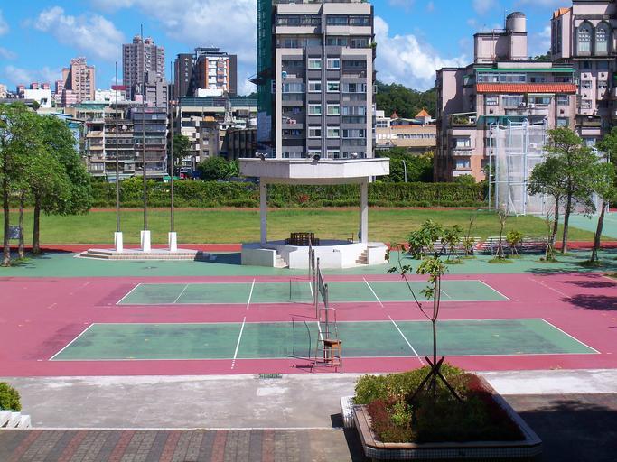 Keywords: NeiHu High School Volleyball Court and Review Stand.jpg ja 台北市立内湖高級中学のバレー ールコートと司令台 Own 玄史生 2009-09-26 Taipei Municipal NeiHu High School Flagpoles in Taiwan Volleyball courts 玄史生写 文庫 Taken with Kodak EasyShare M380