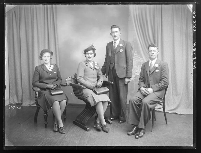 | Keywords: proni allison allison & co. photographers allisoncophotographers wedding wedding portrait weddingportrait genealogy ancestry ulster armagh northern ireland northernireland monochrome blackandwhite groupshot people photo border surreal black and white Creator: H. Allison & Co. Photographers Date: 27th January 1943 Original Format: Glass Plate Negative, 9.5 X 7.5 inches Description: Nelson family of Derryfubble, Dungannon, County Tyrone - Wedding Portrait PRONI Ref: D2886/W/Wedding/541 Copying and copyright: Please see www.proni.gov.uk/index/research_and_records_held/copying_... For Copy Orders, contact: Email: proni@dcalni.gov.uk For fees and charges see: www.proni.gov.uk/index/about_proni/are_there_any_fees_and... Creator: H. Allison & Co. Photographers Date: 27th January 1943 Original Format: Glass Plate Negative, 9.5 X 7.5 inches Description: Nelson family of Derryfubble, Dungannon, County Tyrone - Wedding Portrait PRONI Ref: D2886/W/Wedding/541 Copying and copyright: Please see www.proni.gov.uk/index/research_and_records_held/copying_... For Copy Orders, contact: Email: proni@dcalni.gov.uk For fees and charges see: www.proni.gov.uk/index/about_proni/are_there_any_fees_and... |