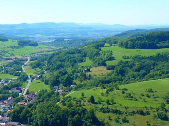 Keywords: nenningen swabian alb landscape idyll forest reported sky haze blue