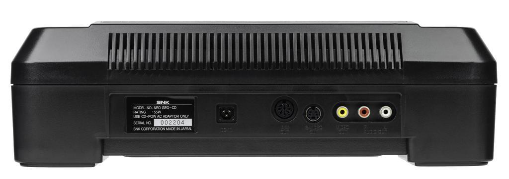 | Keywords: Neo-Geo-CD-FL-Flat-Back.jpg The Neo Geo CD a video game console released by SNK in Japan in 1994 This is the front-loader model which was the first version released and only in Japan The Neo Geo CD was a conversion of the original Neo Geo AES hardware into a system with cheaper more accessible media The original AES used large cartridges that cost hundreds of dollars each whereas this model used common CDs that cost pennies to produce The system also included a more standard gamepad for the pack-in controller <br>This picture shows the back of the console showing inputs and outputs From left to right DC power in AV multi port S-Video port and composite video and stereo sound ports own 2015-06-20 Evan-Amos User Evan-Amos/EABanner Electronic devices on white background Taken with Nikon D7000 Evan-Amos Neo-Geo |