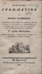 Keywords: Neofit-Rilsi-Bulgarian-Grammer-Book-Cover.jpg Ко ица на Бълга ска г аматика на еофит Рилски own scanned 1835 Neofit Rilski PD-old Title pages 1835 books Bulgarian literature Neofit Rilski Books from Austria Books in Bulgarian Textbooks