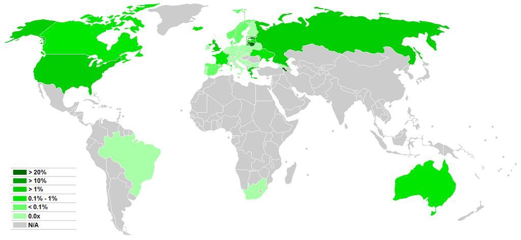 | Keywords: Neopaganism numbers by country.png Makes use of unreliable sources This map shows the demographic distribution of Neopagans in the world Sources Total number of Neopagans in the United States and other countries - 3 to 6 million adherents http //www adherents com/Na/Na_465 html 2780 Adherents com - Neopaganism World Christian Encyclopedia estimates 10 million Neopagans including Celtism Heathenism and Native American spirituality http //www religioustolerance org/paganism htm Religious Tolerance - Neopaganism/Religious terms/Religious information - What do Paganism and Pagan mean Wiccans in the United States and other countries - 800 000 to 5 million adherents http //www adherents com/Na/Na_666 html 4222 Adherents com - Wicca http //www religioustolerance org/wic_nbr htm Religious Tolerance - How many Wiccans are there http //www religioustolerance org/wic_nbr1 htm Religious Tolerance - Introduction to the topic http //www religioustolerance org/wic_nbr2 htm Religious Tolerance - Estimates of the number of Wiccans in the United States http //www religioustolerance org/wic_nbr3 htm Religious Tolerance - Best estimates for United States and Canada Phyllis Curott The Book of Shadows A Modern Woman's Journey Into the Wisdom of Witchcraft and the Magic of the Goddess 1998 3 to 5 million World Christian Encyclopedia 1982 reported 6 million Wiccans http //www religioustolerance org/paganism htm Religious Tolerance - Neopaganism/Religious terms/Religious information - What do Paganism and Pagan mean Hellens in Greece - 100 000 to 400 000 adherents of which 2000 registered New Statesman http //www newstatesman com/200703200001 The ancient gods of Greece are not extinct 20 March 2007 100 000 to 300 000 Telegraph co uk http //www telegraph co uk/news/main jhtml xml /news/2004/05/08/wgods08 xml Modern Athenians fight for the right to worship the ancient Greek gods 08 May 2004 100 000 EuroNews http //www euronews net/index php page info article 412443 lng 4 Grecia i seguaci degli dèi dell'Olimpo escono allo scoperto 20 March 2007 400 000 Rodnovers in Russia and Eastern Europe - tens of thousands of adherents Adrian Ivakhiv http //www uvm edu/~aivakhiv/Insearch pdf In Search of Deeper Identities Neopaganism and Native Faith in Contemporary Ukraine Nova Religio 8 3 University of California Press 2005 100 000 in Ukraine Kaarina Aitamurto http //www cesnur org/2007/bord_aitamurto htm Russian Rodnoverie Negotiating Individual Traditionalism CESNUR 2007 10 000 in Russia Volodia http //www maison-russie fr/index php option com_content task view id 3884 Itemid 36 Au cœur du paganisme russe contemporain Maison-Russie 1 of Russian population Victor Shnirelman http //www wlu ca/documents/6483/Christians_Go_home pdf Christians Go Home Journal of Contemporary Religion 17 2 2002 37 of Mari population in Mari-El Hetans in Armenia - 32 of the population Karine Ter-Saakian https //iwpr net/global-voices/armenia-pagan-games Armenia Pagan Games Institute for War Peace Reporting 2004 Romuvans in Lithuania - 26 of the population Inija Trinkuniene http //www marasloks lv/public/ id 99 ln en The Folkloric Tradition as the Substance of Ethnic Religion Māras Loks Taaraists in Estonia - 11 of the population Ahto Kaasik http //www einst ee/culture/II_MMIII/kaasik html Old Estonian Religions Istituto Estone 2003 Neopagans in the United Kingdom - 2 of the population Jenny Percival http //scotlandonsunday scotsman com/uk/Pagan-prisoners-allowed--twig 4071480 jp Pagan prisoners allowed twig wands in cells Scotland on Sunday 11 May 2008 Religion maps of the world Neopagan distribution maps of the world |