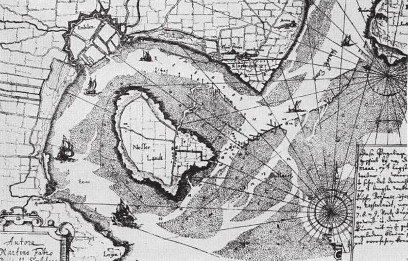 | Keywords: Nesserlander Höft - Martin Faber (ausschnit).jpg nl Uitsnede van de kaart 'Afbeelding van 't Nesserlander Hooft' van Martin Faber uit het verzamelwerk 'Trifoleum Aureum' 1648 http //books google nl/books id 3GUfBl7Ne7UC pg PA262 Gudrun Anne Dekker 2010 Ubbo Emmius Leben Umwelt Nachlass und Gegenwart p 262 Martin Faber 1645 History of Emden Maps of Emden PD-old-100 | ||||