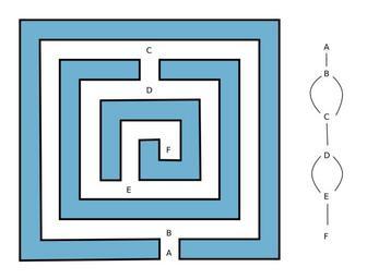 Keywords: Nested Labyrinth.svg Nested Maze and its abstract undirected graph of crossings own 2006-10-07 MistWiz Free to use copy modify Mazes undirected planar graphs