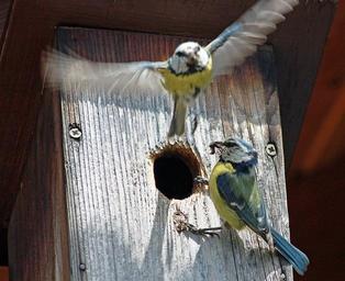 Keywords: nesting box blue tit food tit claws out birds small bird bird