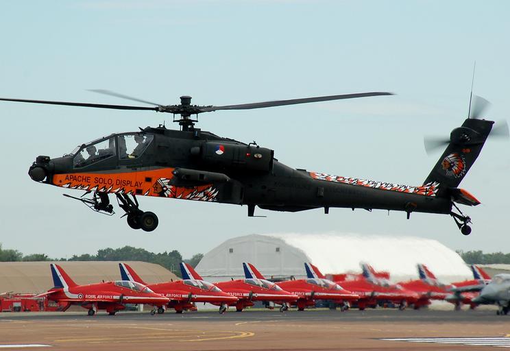 | Keywords: Netherlands af apache solo display at riat 2010 arp.jpg Boeing AH-64D Apache code Q-19 of the Royal Netherlands Air Force Solo Display Team at the 2010 Royal International Air Tattoo Fairford Gloucestershire England My camera Nikon D50 DSLR Departures day Monday 19th July 2010 Photographed by myself Adrian Pingstone Arpingstone 2010 Royal International Air Tattoo BAE Hawk Red Arrows Apache Solo Display Team | ||||