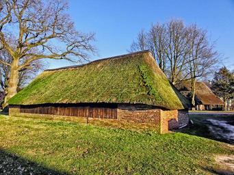 Keywords: netherlands building shelter thatched roof architecture sky clouds grass outside