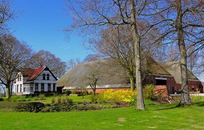 Keywords: netherlands farm house barn home buildings architecture lawn grass trees sky clouds nature outside country countryside plants landscaping