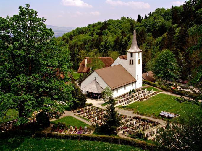Keywords: netherlands landscape scenic church valley forest trees woods flowers graves nature outside country countryside sky clouds summer spring