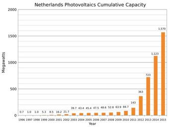 | Keywords: Netherlands Photovoltaics Installed Capacity.svg translate yes en Cumulative photovoltaics installed in the Netherlands from 1996 to 2015 Sources 2014 http //www iea-pvps org/fileadmin/dam/public/report/technical/PVPS_report_-_A_Snapshot_of_Global_PV_-_1992-2014 pdf 2015 http //www iea-pvps org/fileadmin/dam/public/report/PICS/IEA-PVPS_-__A_Snapshot_of_Global_PV_-_1992-2015_-_Final_2_02 pdf 2015-05-11 own Delphi234 other versions cc-zero Solar energy in the Netherlands Photovoltaic power statistics |