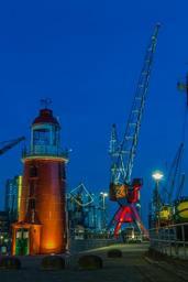 Keywords: netherlands rotterdam port crane lighthouse at night