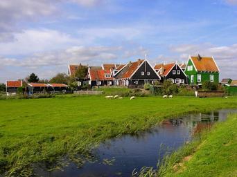 Keywords: netherlands sky clouds landscape nature outside countryside country village homes houses sheep farm rural scenic summer spring stream water reflections