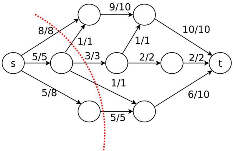 Keywords: Network flow 9 vertices solution.svg en Illustration of a solution to a maximum flow problem 2013-01-29 10 21 21 own Jbeyerl cc-zero Flow networks Uploaded with UploadWizard