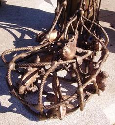 Keywords: Netz Rumpf-Brunnen Ludwigshafen-Mundenheim.jpg monument in Ludwigshafen Germany 2006-07-18 own Immanuel Giel FoP-Germany Fishing nets in art Sculptures of fish Zedwitz-Brunnen