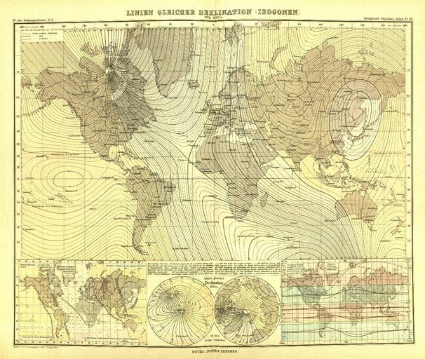 | Keywords: Neumayer Atlas des Erdmagnetismus 1.jpg http //hdl handle net/10013/epic 31485 d001 Atlas des Erdmagnetismus Gotha Justus Perthes 20 S 5 Karten pdf 99 MB - No I Linien gleicher Deklination Isogonen Archive/Alfred Wegener Institute 1891 Georg Neumayer Author died more than 70 years ago - public domain PD-old Magnetic field maps of the world |