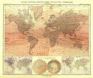 | Keywords: Neumayer Atlas des Erdmagnetismus 4.jpg http //hdl handle net/10013/epic 31485 d001 Atlas des Erdmagnetismus Gotha Justus Perthes 20 S 5 Karten pdf 99 MB - No IV Linien gleicher magnetischer Horizontal-Intensität Archive/Alfred Wegener Institute 1891 Georg Neumayer Author died more than 70 years ago - public domain PD-old Magnetic field maps of the world |