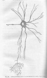 | Keywords: NeuroneChauveau1890MeyCh.jpg en A neuron fr Un neurone une cellule ganglionnaire isolée de la corne antérieure de la moelle <br /> -o noyau entouré par le corps cellulaire -n prolongement cylindraxile ou de Deiters ou cylindraxe ou axone -z prolongements protoplasmiques ou dendrites qui se subdivisent en plusieurs ramifications P -P arborisation terminale <br /> ” Chauveau Auguste Arloing Saturnin Traité d'anatomie comparée des animaux domestiques <br /> 1 064 p page 760 1890 Paris Lib J B Baillière et Fils domaine public décès des auteurs 1917 et 1911 Meyer Ch 2011-03-24 PD-old Neurons Histology |