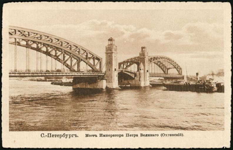 Keywords: Neva River SPb 000000057 1 m.jpg Saint Petersburg Russia Peter the Great Bridge Санкт-Пете бу г Река Большеохтинский мост Saint-Pétersbourg Neva http //www nlr ru/petersburg/spbpcards/arterii/3 htm author 1900-1917 PD-old Postcards of bridges in Saint Petersburg Bolsheokhtinsky Bridge