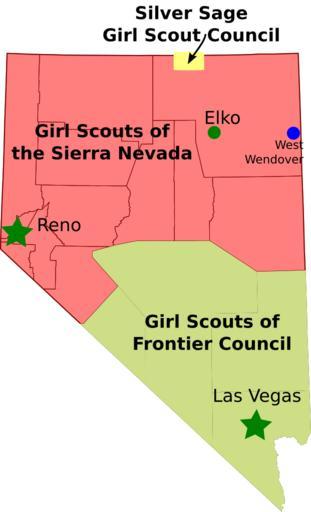 | Keywords: Nevada-gsusa.svg Girl Scout Councils in Nevada my work based on Wikipedia county maps 2009-01-29 Emma Pease Erp en Original upload log en wikipedia ftcg page en wikipedia Nevada-gsusa svg wikitable - 05 44 1 February 2009 5 336 × 8 799 80 565 bytes Erp w en <nowiki> </nowiki> - 23 20 29 January 2009 5 336 × 8 799 79 288 bytes Erp w en <nowiki> </nowiki> - 23 18 29 January 2009 5 336 × 8 799 79 287 bytes Erp w en <nowiki> Girl Scout Councils in Nevada my work based on the Wikipedia county maps 2009-1-29 Emma Pease </nowiki> Scouting in Nevada Girl Scouts of the USA Council maps |