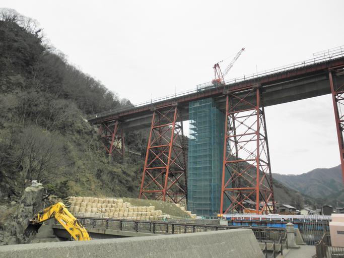 Keywords: New amaube bridge 2.JPG ja 建設が 余部新橋りょう このあたりの現橋を撤去し 新橋と現 の線路が接続される oota's file oota 2010-03-31 Amarube railway bridge Bridge construction in Japan