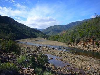 Keywords: new caledonia landscape riverbed sky clouds water rocks mountains scenic nature outside forest trees woods