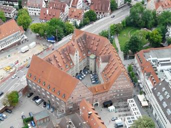 Keywords: new construction ulm building architecture courtyard service building police aerial view autos police cars
