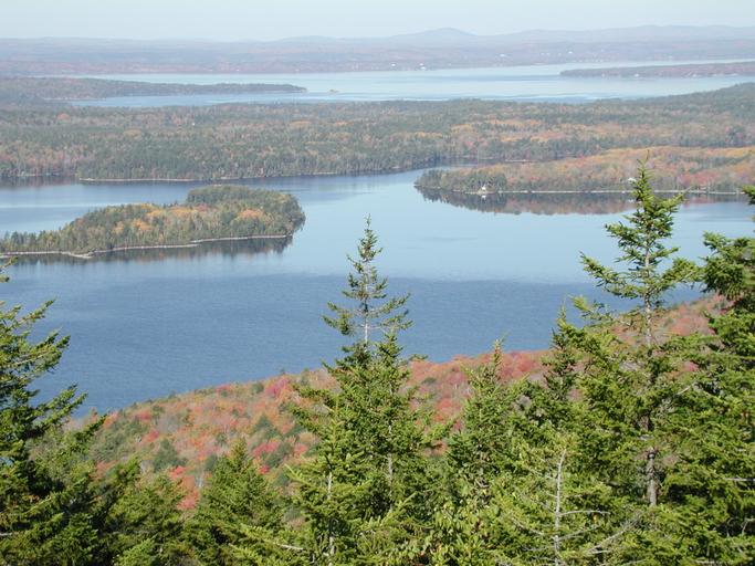 Keywords: new england trees forest pine trees woods water islands bay inlet fall colors fall autumn shoreline panoramic view