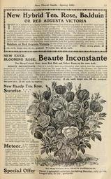 | Keywords: New floral guide (16243180693).jpg New Floral Guide ” Spring 1901 <br> 11 <br> New Hybrid Tedw Rose Bd lduin <br> OR RED AUGUSTA VICTORIA <br> T <br> HIS is a splendid new hardy constant blooming rose that every lover of beautiful roses must <br> have as soon as known it is fully as large and almost as beautiful as the famous American <br> Beauty and nnich more hardy and productive The bush is a strong healthy grower and <br> a constant and abundant bloomer every shoot producing a flower it has thick leathery foliage <br> and is remarkably free from all forms of leaf blight and rust The flowers are of largest size <br> and fully double seldom showing the centre The color is brilliant carmine red exquisitely shaded <br> with rich orange scarlet very bright and beautiful and delightfully sweet It makes splendid <br> large elegantly formed buds is quite hardy and in every way entitled to a place among our most <br> showy and handsome ever-blooming roses suitable both for garden planting and house culture <br> Baldtlin or Red Augusta Victoria ® ° roses you cannot afford to miss it should <br> ¢ ” be included in every order Price strong' plants 20 <br> cts each larger size 25 cts postpaid Two-year size 40 cts each <br> Beaute Inconstante <br> NEW EVER- <br> BLOOMING ROSE <br> The Mewny-Colored Rose ” bears Red Pink and Yellow Roses on the same bush <br> BEAUTE INCONSTANTE ” This is a lovely new ever-blooming rose which has the remarkable <br> property of bearing different-colored roses on the same bush Sometimes the flowers are distinctly <br> striped and variegated but frequently are of entirely different colors some being clear satiny-pink some <br> bright red and others deep yellow with all intermediate shades between which besides being very <br> beautiful are a great curiosity The colors and variegations become more distinct and remarkable as the <br> plant becomes older and stronger It is a free and constant bloomer The flowers and buds are of good <br> size and fine form highly valued for cutting and wearing I5 ctS each; larger size 20 ct8 postpaid <br> two-year size 35 cts each by express <br> New Hg rdy Te w Rose <br> Sunrise / ¢ ¢ <br> The well known Sunset Rose <br> is always greatlj admired <br> and the new Sunrise is still <br> more gorgeous and beautiful <br> and as yet a grand novelty <br> The flowers are extra large <br> perfectly double and of ex- <br> cellent form and texture <br> The foliage is thick and <br> glossy and the new <br> growth is the darkest <br> and most beautiful found <br> among roses the buds <br> are long and pointed <br> beautifully colored with <br> scarlet and yellow The <br> flowers are large and <br> full withbroad shell shaped <br> petals and delightfully <br> sweet The color is dark <br> coppery red beautifully <br> shaded with rich orange <br> exceedingly beautiful The <br> bush is a strong healthy grow- <br> er and most abundant bloom- <br> er All lovers of new and beau- <br> tiful roses will want SUNRISE 30 <br> cts eacli; larger size 35c pobtpaid <br> mS ± fi hybrid Tea <br> IVlCtGOr- ' remarkable <br> constant bloom and brilliant color; <br> bright rich velvety crimson very vivid <br> and striking; grows strong and vigor- <br> ous and is a most constant and <br> abundant bloomer bearing flowers <br> all through the season Ven - <br> fragrant and good everj' way One <br> of the brightest and best roses <br> 15 cts each ; larger size 20 <br> cts ; tvFO-year size 35 cts <br> - / Many-Colored Rose BEAUTE INCtfNSTANTE <br> wPSCld l Vjlter 'These 3 splendid varieties including Sunrise only 50 cts <br> I/arger size 60 cts postpaid 42484173 134532 67120 Page 11 Text http //www biodiversitylibrary org/page/42484173 1901 10 1111/j 1469-7998 1865 tb02381 x Conard Jones Co West Grove Pa ; Henry G Gilbert Nursery and Seed Trade Catalog Collection NameFound Victoria NameConfirmed Victoria EOLID 34123 NameBankID 897688 Biodiversity Heritage Library New floral guide 1901 Garden Stories Bulbs Plants Catalogs Nursery stock Plants Ornamental Roses Seeds U S Department of Agriculture National Agricultural Library bhl page 42484173 dc identifier http //biodiversitylibrary org/page/42484173 Conard Jones Co Flowers West Grove PA Conard Jones Co bhlGardenStories BHLinbloom bulbs plants plants ornamental u s department of agriculture national agricultural library west grove pa conard jones co bhlgardenstories bhlinbloom Information field Flickr posted date ISOdate 2015-03-19 Check categories 2015 August 23 CC-BY-2 0 BioDivLibrary https //flickr com/photos/61021753 N02/16243180693 2015-08-23 23 50 49 cc-by-2 0 PD-old-70-1923 New floral guide 1901 Photos uploaded from Flickr by Fæ using a script |