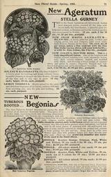 Keywords: New floral guide (16655935347).jpg New Floral Guide ” Spring 1901 <br> 71 <br> New Ageratum Stella Gurney <br> SOLANUM RANTONETTI The BluevSolanum <br> A lovely plant for bedding and house culture; bears <br> beautiful clusters of deepest sky blue flowers ; blooms <br> all the time and is very easy to grow 10 cts <br> each; larger 15 cts each postpaid <br> LEMON VERBENA Highly prized for the spicy <br> and delicious fragrance of its leaves; entirely different <br> from anything else; nice for pots and bedding 10 <br> cts each postpaid <br> Ne25L Ageratum <br> STELLA GURNEY <br> THIS is the finest Ageratum yet introduced makes <br> neat compact plants covered all the time with <br> lovely fluffy sky blue flowers a splendid plant foi <br> beds and borders in Summer and for the window garden <br> and conservatory in Winter 15 cts each 2 for 25 <br> cts 1 25 per doz postpaid <br> NEW SNOW WHITE AGERATUM ” <br> BLANCHE ” A lovely plant for pots borders and <br> edging grows low and compact pure snow white <br> fluffy flowers blooms all the time 15c each ; 1 25 <br> per dozen makes a fine contrast with the New <br> Blue Stella Gurney above will send both for25 c <br> or with Dr Ross Coleus the 3 for 40c postpaid <br> NEW COLEUS DOCTOR ROSS This is a <br> truly magnificent Coleus One of the brightest and <br> richest colored varieties ever seen; enormous leaves <br> rich dark velvety crimson shaded and marbled <br> with black and showing a broad w edge of creamy- <br> white and green in centre ; elegantly fringed and bor- <br> dered with green and gold exceedingly beautiful 15 ctS <br> each 4 for 50 cts 1 50 per doz postpaid <br> TUBEROUS <br> ROOTED <br> NEW- <br> Be onia <br> Solanum Rantonetti <br> The New Tuberous Rooted Begonias are among the most <br> beautiful of all Summer flowering bulbs They grow 12 to <br> 15 inches high branchmg freely and blooming abundantly <br> all Summer and Fall The flowers are exceedingly rich and <br> handsome; from four to six inches across; many brilliant colors including <br> red pink crimson scarlet salm on yellow and pure white The <br> Bulbs should be started early in the house and set out when ground <br> is warm they like rich moist ground when convenient but will do <br> well in all usual places if mulched with old well-rotted ma- <br> nure or some similar material to shade the ground and prevent <br> it from getting too hot and dry Keep roots in cellar over <br> Winter and they will produce larger and finer flowers year <br> after year They are very grand and beautiful and exten- <br> sively used In the finest'places <br> SINGI Scarlet Orange Crimson Pink White <br> and Yellow 10 cts each; 6 for 50 cts ; 75 cts per <br> doz ; 6 00 per 100 postpaid <br> SINGI/B All colors mixed 7 cts each; 65 cts per <br> doz ; 4 00 per 100 postpaid <br> DOUBI E Scarlet Pink White and Yellow 20 cts <br> each; set of 4 colors for 75 cts ; 2 00 per doz ; <br> postpaid <br> D0UBI i5 All colors mixed 15 cts each; 1 50 per <br> doz postpaid <br> GHEVILLEA KOBUSTA Silk Oak or Fern I eaf Tree Resembles a <br> lovely fern or palm with deeply cut leaves but grows quickly and easily; <br> the young leaves are bronze green with soft feathery tassels like fine <br> raw silk very handsome for conservatory or window Strong thrifty <br> K«W Tuberous Begonia plants io and 15 cts each j ostpaiJ; larger size 35 cts expresis 42484233 134532 67120 Page 71 Text http //www biodiversitylibrary org/page/42484233 1901 10 1111/j 1469-7998 1865 tb02381 x Conard Jones Co West Grove Pa ; Henry G Gilbert Nursery and Seed Trade Catalog Collection NameFound Ageratum NameConfirmed Ageratum L EOLID 59467 NameFound Begonia NameConfirmed Begonia aff palmata GBG 002-089-95 EOLID 11904651 NameFound Solanum NameConfirmed Solanum EOLID 11195972 NameBankID 2653514 NameFound Verbena NameConfirmed Verbena subser Pseudoracemosae N O'Leary EOLID 24001436 Biodiversity Heritage Library New floral guide 1901 Garden Stories Bulbs Plants Catalogs Nursery stock Plants Ornamental Roses Seeds U S Department of Agriculture National Agricultural Library bhl page 42484233 dc identifier http //biodiversitylibrary org/page/42484233 Conard Jones Co Flowers West Grove PA Conard Jones Co bhlGardenStories BHLinbloom bulbs plants plants ornamental u s department of agriculture national agricultural library west grove pa conard jones co bhlgardenstories bhlinbloom Information field Flickr posted date ISOdate 2015-03-19 Check categories 2015 August 23 CC-BY-2 0 BioDivLibrary https //flickr com/photos/61021753 N02/16655935347 2015-08-23 23 58 05 cc-by-2 0 PD-old-70-1923 New floral guide 1901 Photos uploaded from Flickr by Fæ using a script