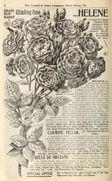 | Keywords: New floral guide (16675745760).jpg The Conard Jones Company West Grove Pa <br> Sir ClimtilngRose <br> HARDY <br> HELENE <br> m <br> A Grand New Hardy <br> Climbing Rose <br> introduced from <br> Germany and <br> undoubtedly the <br> greatest Novelty <br> in climbing <br> Roses offered <br> for years <br> <br> HELENE is a <br> strong rapid grower <br> throwing up canes 10 <br> to 12 feet high and making <br> a well-formed bush in a single sea- <br> son In growth and habit it is <br> similar to Crimson Rambler but the foliage is better <br> and it is almost thornless It is en- <br> tirely hard - and needs no protec- <br> tion unless very far north The <br> flowers are larger and more double <br> than Crimson Rambler and born in mag- <br> nificent clusters entirely covering the bushes <br> from top to bottom for weeks at a time The <br> color is soft violet crimson much darker and <br> entirely different shade from the Crimson Ram- <br> bler and if possible more beautiful Heleiie <br> should be in every collection and is splendid for porches <br> trellises screens etc in fact w-hereverthe finest Hardy Climb- <br> ing Roses are wanted Price 15c each 2 for 25 cts 1 50 <br> perdoz larger size 20 cts each 2 00 per doz postpaid <br> Two-year size 40 cts each 4 00 per doz Three-year <br> size large Bearing Bushes 75 cts and 1 each express <br> CARMINE PILLAR ' ' Xst ' <br> A magnificent climber bears splendid wreaths and cluster of <br> immense single roses each one 12 to 15 inches around deep rich <br> carmine red and looking almost exactly like beautiful red <br> Clematis flowers hanging in graceful clusters all over the <br> vines makes a grand show trained up to a pillar or trellis <br> where it can grow tall and have good support Perleotly <br> liardy and needs no protection Will grow anywhere <br> and bloom profusely every year 15c each 2 for 25c 1 50 <br> per doz postpaid Two-year size 30c ; 3 00 per doz express <br> t I I T P r F ni TFAN ' ' constant blooming Cluster <br> DELLrJD UL \ji\L LrLL\0 Rose flowering continuously through <br> the whole season; pure white flowers in grape form clusters some- <br> times tinted rose; semi-climbing habit best for low trellises and beds <br> from which roses can be picked from June to December Blooms all the time <br> 5c each larger size 20c ; 1 50 and 2 00 per doz postpaid Two- <br> year size 30 each 3 00 per doz by express <br> The 3 Varieties for 40c ; larger size 3 for 50o <br> Two-year size 3 for 8So by exprest <br> SPECIAL OFFER 42484170 134532 67120 Page 8 Text http //www biodiversitylibrary org/page/42484170 1901 10 1111/j 1469-7998 1865 tb02381 x Conard Jones Co West Grove Pa ; Henry G Gilbert Nursery and Seed Trade Catalog Collection NameFound CLEMATIS NameConfirmed Clematis ser Alpina W J Yang L Qian Li EOLID 38289 Biodiversity Heritage Library New floral guide 1901 Garden Stories Bulbs Plants Catalogs Nursery stock Plants Ornamental Roses Seeds U S Department of Agriculture National Agricultural Library bhl page 42484170 dc identifier http //biodiversitylibrary org/page/42484170 Conard Jones Co Flowers West Grove PA Conard Jones Co bhlGardenStories BHLinbloom bulbs plants plants ornamental u s department of agriculture national agricultural library west grove pa conard jones co bhlgardenstories bhlinbloom Information field Flickr posted date ISOdate 2015-03-19 Check categories 2015 August 23 CC-BY-2 0 BioDivLibrary https //flickr com/photos/61021753 N02/16675745760 2015-08-23 23 56 26 cc-by-2 0 PD-old-70-1923 New floral guide 1901 Photos uploaded from Flickr by Fæ using a script |