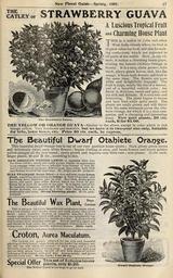| Keywords: New floral guide (16677083279).jpg New Floral Guide Spring 1901 <br> 47 <br> SltEYor STRAWBERRY GUAVA <br> A Luscious Tropical Fruit <br> and Cliarming House Plant <br> T' <br> HIS is a native of Cuba and other <br> West India islands where its fruit is <br> of great value for food and also for mak- <br> ing confections which are exported to <br> all parts of the world Here in our cli- <br> mate it makes a charming house plant <br> rivaling the famous Otahiete Orange in <br> beauty It is a nice clean grower with <br> thick glossy green leaves and like the <br> orange it bears both flowers and fruit at <br> the same time The flowers are pure <br> white and delightfully fragrant The <br> fruit is large nearly the size of a walnut <br> and of a beautiful reddish color ; the <br> flavor is delicious sweet and spicy and <br> yet rich and delicate It is very rare and <br> interesting The plant begins to bloom <br> and bear fruit while quite small The <br> plants are easily grown and will thrive <br> with the same treatment given the Ota- <br> hiete Orange for which it is a nice com- <br> panion and a charming and interesting <br> plant Nice mail plants 20 cts <br> each 6 for 1 00 <br> THE YEIi'LOW OR OKANGE G-UAVA Similar to the above except in color which is rich <br> orange yellow Very handsome and desirable but we have it in two-year size only Suitable <br> for tubs lawn boxes etc Price 40 cts each by express <br> Tbe Bea utiful Dw2irf Otz bictc Ompge <br> This beautiful dwarf Orange tree is one of our very prettiest house plants ; thick glossy green leaves <br> and deliciously sweet pure white flowers ; begins fruiting at once and bears flowers and lovely golden <br> yellow oranges all the year round ; easily grown and requires very little care ; nice plants 15 cts each; <br> larger plants 20 and 25 cts according to size <br> NEW AMERICAN WONDER LEMON A beautiful little tree <br> for house culture hardy and easily grown; similar in appearance <br> to an orange tree and bears splendid large lemons of best fla- <br> vor for all culinary purposes; flowers large pure white; both fruit <br> and flowers borne at the same time 15c ; larger size 20c postpaid <br> OLEA FRAGRANS Sweet Olive A rare and very choice house <br> plant somewhat resembling an orange in habit of growth and <br> becoming more beautiful year by year Has thick glossy green <br> leaves and small pure white flowers which are borne in pro- <br> fusion for at least six months in the year It is highly valued for <br> its exquisite fragrance which will fill the whole house with de- <br> licious perfume for months at a time Will thrive best in a <br> moderately cool room Strong blooming plants 35 cts each <br> postpaid <br> Tlie Straw berrj Gii i\ i <br> Hoya <br> Carnosa <br> The Beautiful Wax Plant <br> This is not new but a very beautiful and satisfactory house plant <br> It is a low climber with brown stems and thick glossy olive green <br> leaves ; bears beautiful clusters of exquisite wax-like flowers <br> creamy white delicately tinted with pink ; they are delightfully fra- <br> grant and continue beautiful for months at a time It grows slowly <br> and becomes more beautiful with age Will do best in a small pot <br> and should be kept rather dry ; easily managed thrives nicely in the <br> living-room A popular favorite wherever known JJOcts each <br> Croton Aurea Maculatum <br> The Crotons are greatly admired for the rich and beautiful <br> coloring of their leaves ; some kinds are too tender for ordinary use <br> but this one will stand all manner of hard usage and is a most <br> desirable plant for parlor or living-room It grows erect with long <br> narrow deep green leaves spotted all over with flakes of yellow <br> looking as if sprinkled with gold dust Always pretty and grows <br> prettier every year 30 cts each ; 3 for 50 cts <br> r\Ui r This set of 6 choice house <br> KJllK V plants only 1 20 <br> The Yellow Guava is too large to go by mail <br> Special <br> Dwarf Otahiete Orange 42484209 134532 67120 Page 47 Text http //www biodiversitylibrary org/page/42484209 1901 10 1111/j 1469-7998 1865 tb02381 x Conard Jones Co West Grove Pa ; Henry G Gilbert Nursery and Seed Trade Catalog Collection NameFound Carnosa NameConfirmed Carnosa Gray 1841 EOLID 2769884 NameFound Hoya NameConfirmed Hoya R Br EOLID 70994 NameFound Maculatum NameFound Olea fragrans NameConfirmed Olea fragrans NameBankID 1672742 Biodiversity Heritage Library New floral guide 1901 Garden Stories Bulbs Plants Catalogs Nursery stock Plants Ornamental Roses Seeds U S Department of Agriculture National Agricultural Library bhl page 42484209 dc identifier http //biodiversitylibrary org/page/42484209 Conard Jones Co Flowers West Grove PA Conard Jones Co bhlGardenStories BHLinbloom bulbs plants plants ornamental u s department of agriculture national agricultural library west grove pa conard jones co bhlgardenstories bhlinbloom Information field Flickr posted date ISOdate 2015-03-19 Check categories 2015 August 23 CC-BY-2 0 BioDivLibrary https //flickr com/photos/61021753 N02/16677083279 2015-08-23 23 53 05 cc-by-2 0 PD-old-70-1923 New floral guide 1901 Photos uploaded from Flickr by FĂŚ using a script |