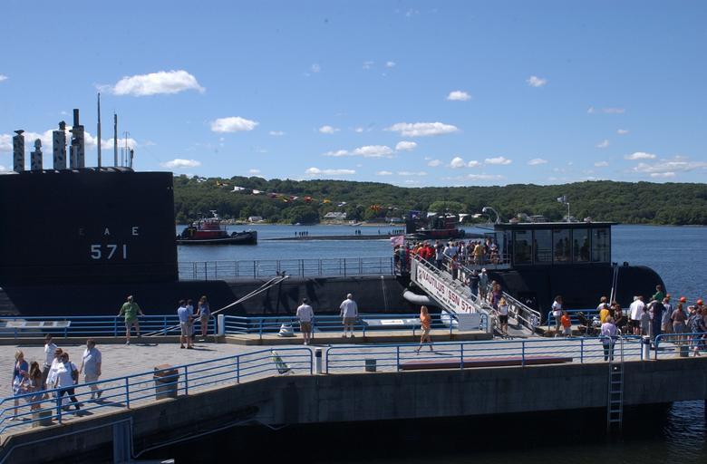Keywords: New London operations 100827-N-OV358-020.jpg en Famliy and friends look on and the Los Angeles Class attack submarine USS Annapolis SSN 760 passes the Historic ship Nautilus while Nautilus crew members and Submarne Veterans of WWII salute their fellow submariners USS Annapolis SSN 760 returned to its home port at Naval Submarine Base New London following a regularly scheduled six month deployment 2010-08-27 Petty Officer 1st Class Peter D Blair https //www dvidshub net/image/1158203 100827-N-OV358-020 2014-01-30 06 14 NEW LONDON CT US PD-USGov-Military-Navy Naval Submarine Base New London USS Annapolis SSN-760 Images from DoD uploaded by Fæ