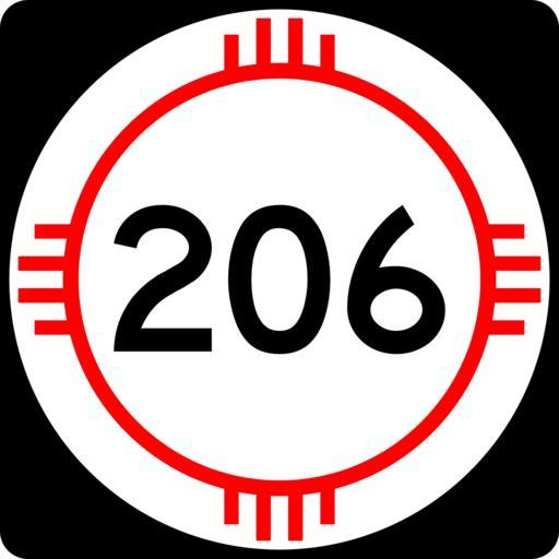 | Keywords: New Mexico 206.svg 750 mm by 750 mm 30 in by 30 in New Mexico state road shield made to the specifications of the http //nmshtd state nm us/upload/images/Plans_Specs_Estimates/Division 20700/701/701 pdf PS E Standard Drawings which specifies a 30 by 30 shield for 3-digit roads Pictures of actual shields were also used for reference Uses the Roadgeek 2005 fonts United States law does not permit the copyrighting of typeface designs and the fonts are meant to be copies of a U S Government-produced work anyway self-created using Inkscape and Image New Mexico 3di svg 2008-03-26 Mr Matté Own work all rights released Public domain New Mexico State Road shields Shields created by User Mr Matté |