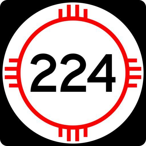 Keywords: New Mexico 224.svg 750 mm by 750 mm 30 in by 30 in New Mexico state road shield made to the specifications of the http //nmshtd state nm us/upload/images/Plans_Specs_Estimates/Division 20700/701/701 pdf PS E Standard Drawings which specifies a 30 by 30 shield for 3-digit roads Pictures of actual shields were also used for reference Uses the Roadgeek 2005 fonts United States law does not permit the copyrighting of typeface designs and the fonts are meant to be copies of a U S Government-produced work anyway self-created using Inkscape and Image New Mexico 3di svg 2008-03-26 Mr Matté Own work all rights released Public domain Created with Inkscape New Mexico State Road shields 224 number Shields created by User Mr Matté |