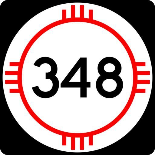 Keywords: New Mexico 348.svg 750 mm by 750 mm 30 in by 30 in New Mexico state road shield made to the specifications of the http //nmshtd state nm us/upload/images/Plans_Specs_Estimates/Division 20700/701/701 pdf PS E Standard Drawings which specifies a 30 by 30 shield for 3-digit roads Pictures of actual shields were also used for reference Uses the Roadgeek 2005 fonts United States law does not permit the copyrighting of typeface designs and the fonts are meant to be copies of a U S Government-produced work anyway self-created using Inkscape and Image New Mexico 3di svg 2008-03-26 Mr Matté Own work all rights released Public domain New Mexico State Road shields Shields created by User Mr Matté