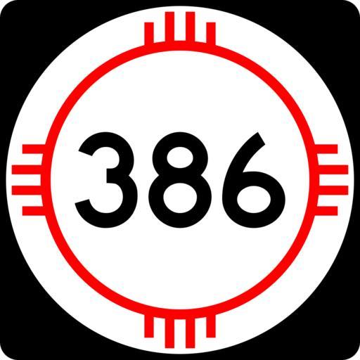 | Keywords: New Mexico 386.svg 750 mm by 750 mm 30 in by 30 in New Mexico state road shield made to the specifications of the http //nmshtd state nm us/upload/images/Plans_Specs_Estimates/Division 20700/701/701 pdf PS E Standard Drawings which specifies a 30 by 30 shield for 3-digit roads Pictures of actual shields were also used for reference Uses the Roadgeek 2005 fonts United States law does not permit the copyrighting of typeface designs and the fonts are meant to be copies of a U S Government-produced work anyway self-created using Inkscape and Image New Mexico 3di svg 2008-03-26 Mr Matté Own work all rights released Public domain New Mexico State Road shields Shields created by User Mr Matté |