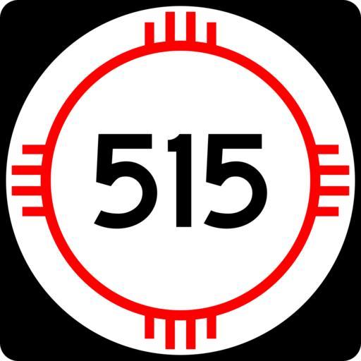 Keywords: New Mexico 515.svg 750 mm by 750 mm 30 in by 30 in New Mexico state road shield made to the specifications of the http //nmshtd state nm us/upload/images/Plans_Specs_Estimates/Division 20700/701/701 pdf PS E Standard Drawings which specifies a 30 by 30 shield for 3-digit roads Pictures of actual shields were also used for reference Uses the Roadgeek 2005 fonts United States law does not permit the copyrighting of typeface designs and the fonts are meant to be copies of a U S Government-produced work anyway self-created using Inkscape and Image New Mexico 3di svg 2008-03-26 Mr Matté Own work all rights released Public domain New Mexico State Road shields Shields created by User Mr Matté |