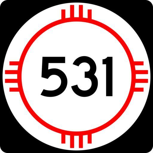 Keywords: New Mexico 531.svg 750 mm by 750 mm 30 in by 30 in New Mexico state road shield made to the specifications of the http //nmshtd state nm us/upload/images/Plans_Specs_Estimates/Division 20700/701/701 pdf PS E Standard Drawings which specifies a 30 by 30 shield for 3-digit roads Pictures of actual shields were also used for reference Uses the Roadgeek 2005 fonts United States law does not permit the copyrighting of typeface designs and the fonts are meant to be copies of a U S Government-produced work anyway self-created using Inkscape and Image New Mexico 3di svg 2008-03-26 Mr Matté Own work all rights released Public domain New Mexico State Road shields Shields created by User Mr Matté |