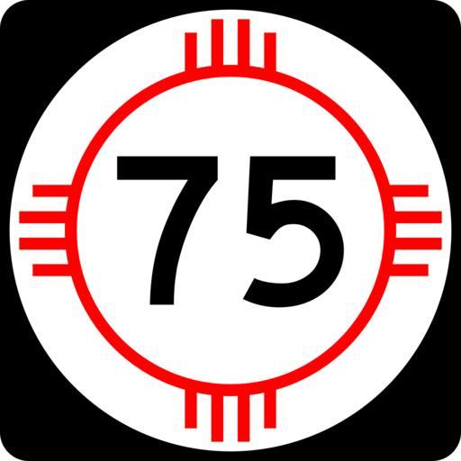 Keywords: New Mexico 75.svg 600 mm by 600 mm 24 in by 24 in New Mexico state road shield made to the specifications of the http //nmshtd state nm us/upload/images/Plans_Specs_Estimates/Division 20700/701/701 pdf PS E Standard Drawings Uses the Roadgeek 2005 fonts United States law does not permit the copyrighting of typeface designs and the fonts are meant to be copies of a U S Government-produced work anyway self-created using Inkscape and Image US DOT FHWA MUTCD SHS 2004 3-7 M1-6 450x450mm 00 svg 2008-03-26 Mr Matté Own work all rights released Public domain New Mexico State Road shields Shields created by User Mr Matté