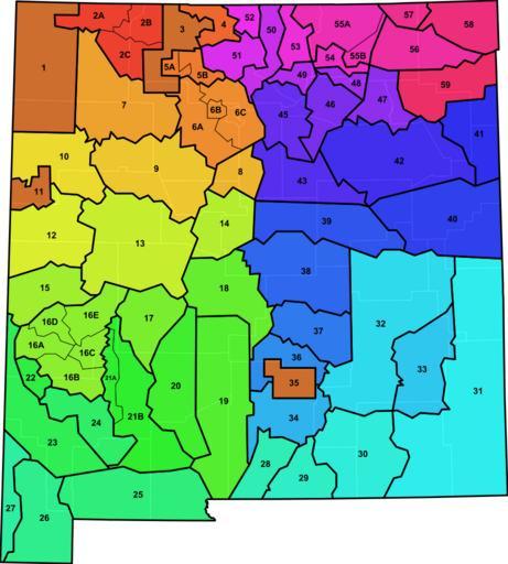 | Keywords: New Mexico Wildlife Management Units.svg An SVG map of New Mexico showing the 58 wildlife management units The units are semi-transparent so that county boundaries can be visualized Note that units 1 3 11 and 35 are Indian Reservations and thus are not managed by the Bureau of Land Management or by the New Mexico Department of Game and Fish Data from the http //www wildlife state nm us/recreation/hunting/unitmaps/index htm NMDGF Blank_Map_of_New_Mexico svg 2011-04-02 21 04 UTC Blank_Map_of_New_Mexico svg Map_of_New_Mexico_highlighting_Grant_County svg David Benbennick derivative work Ninjatacoshell <span class signature-talk >talk</span> derivative work Ninjatacoshell <span class signature-talk >talk</span> SVG maps of New Mexico Animals of New Mexico Wildlife management units of the United States Nature of New Mexico |
